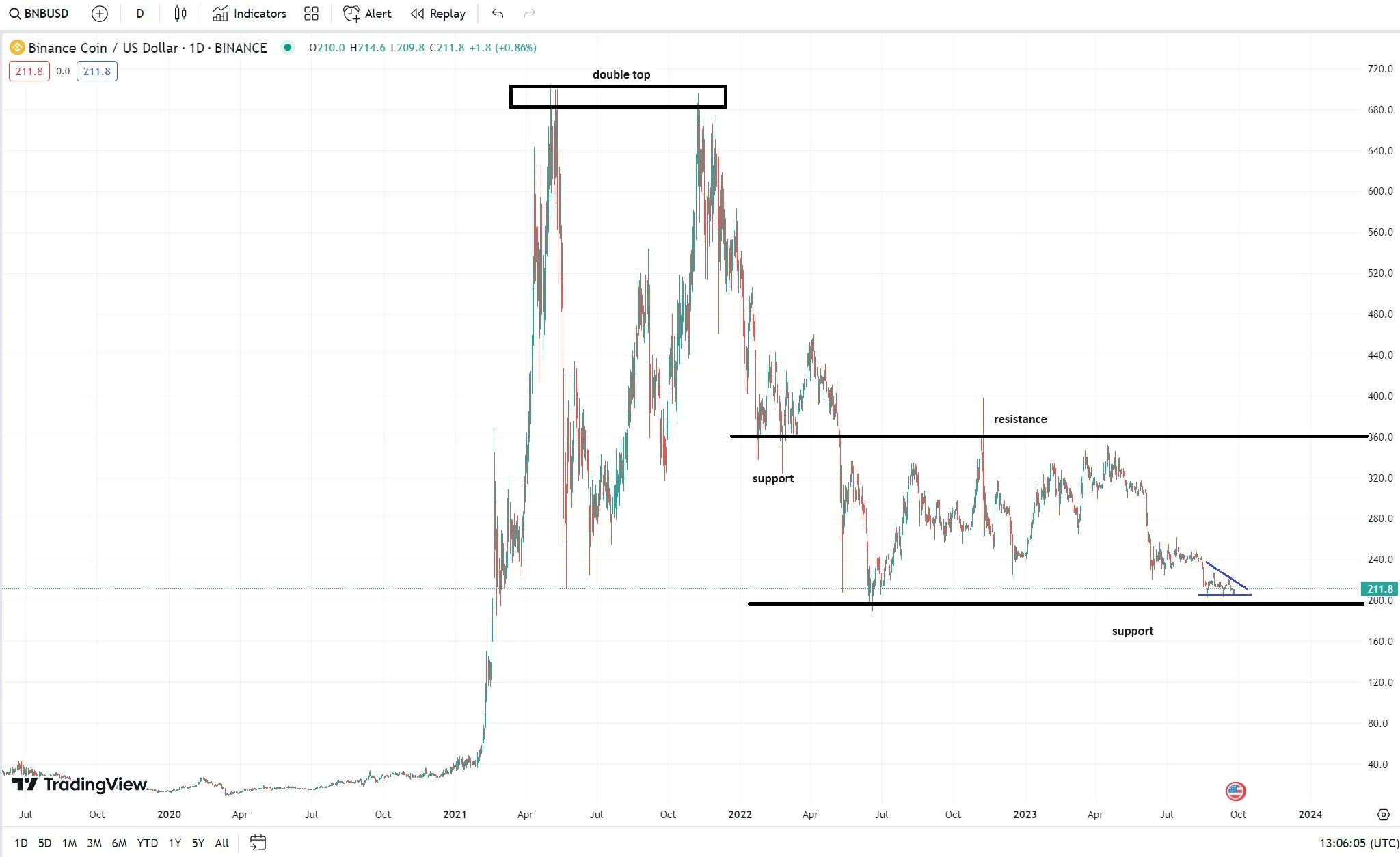 Binance Coin ecosystem expansion price decline support level technical weakness