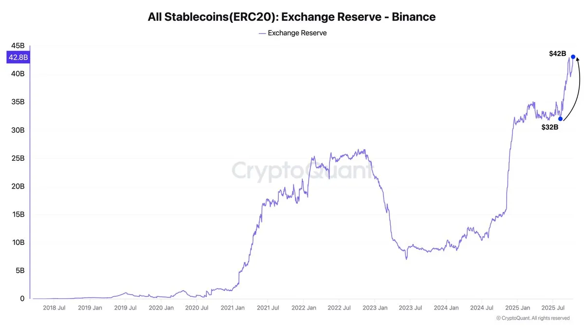Binance’s stablecoin reserve has increased by $12.6 billion over the past two months, reflecting a trend of investor caution in the cryptocurrency market. This significant growth in reserves suggests that investors are seeking stability amid ongoing market fluctuations. The rise in stablecoin holdings indicates a preference for less volatile assets during uncertain times. Analysts note that such movements often signal a cautious approach from investors, who may be anticipating further market developments. The increase in reserves could also imply that investors are preparing for potential opportunities as they navigate the current landscape.