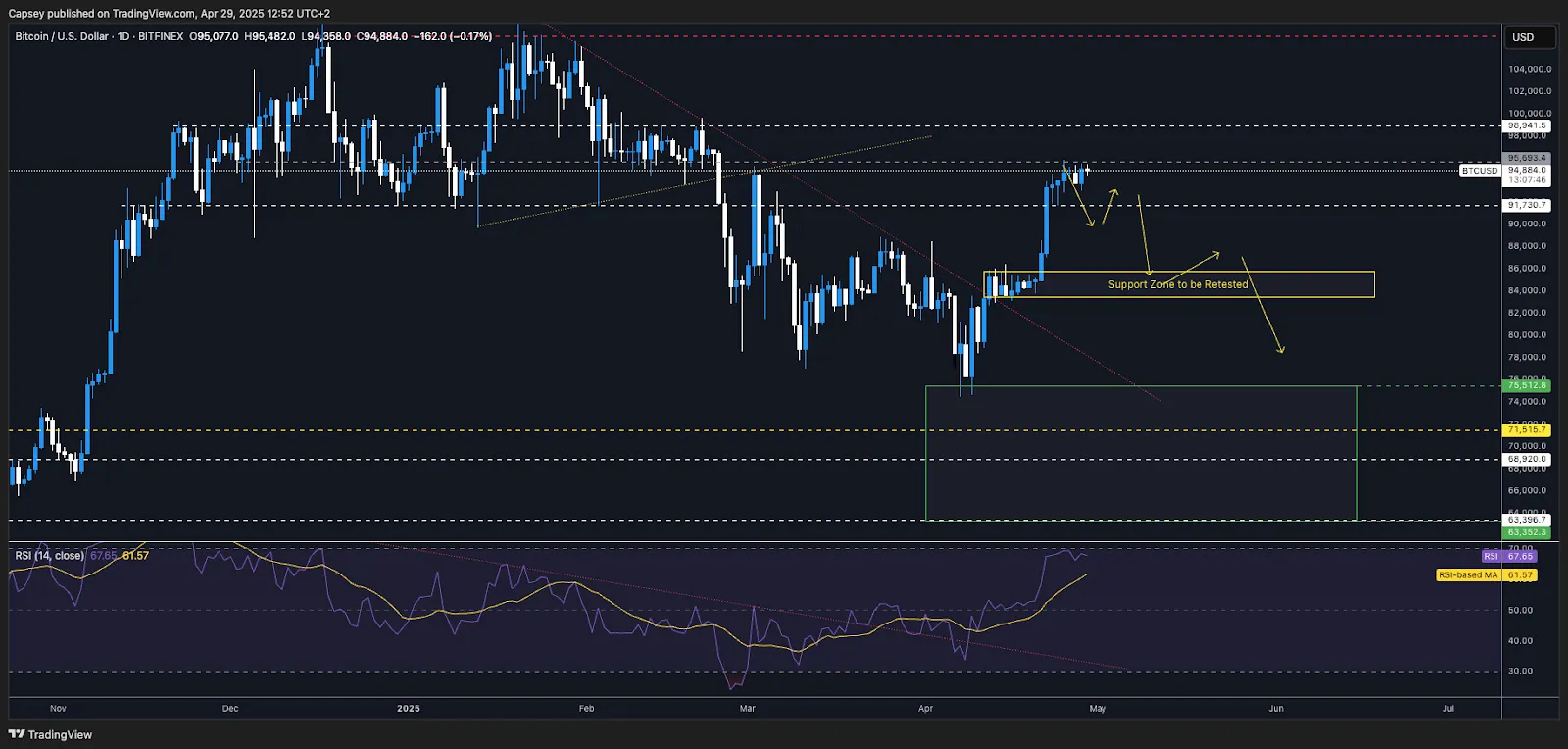 Overall, while current conditions are oversold, the expectation for a recovery remains optimistic, with the $104,000 target serving as a focal point for traders and investors alike.