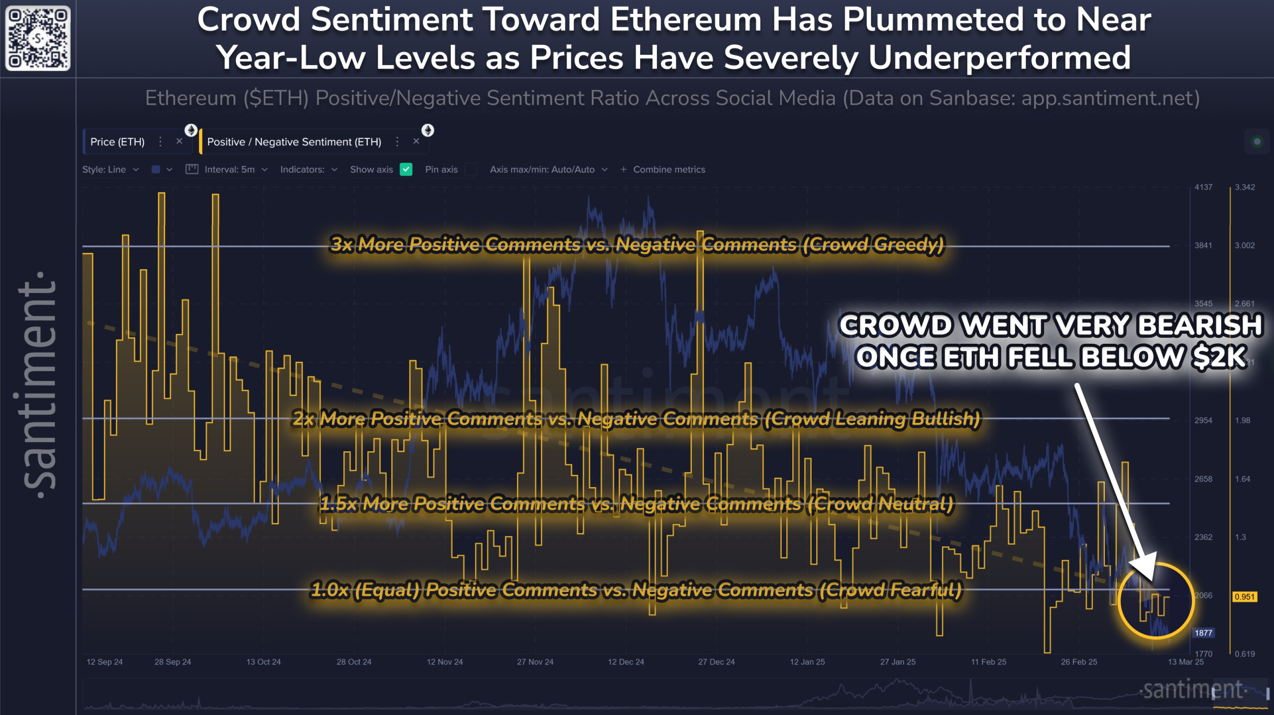 The current trend in Ethereum social media sentiment signals an intriguing correlation with its past performance, particularly seen prior to significant price movements. According to Santiment’s analysis, Ethereum’s declining social media sentiment echoes the patterns observed ahead of its dramatic rally in 2025. This perception among crypto enthusiasts and market analysts suggests a potential turnaround for Ethereum, as social media platforms play a critical role in shaping market interpretations and forecasted movements. The sentiment can heavily influence investor confidence, setting the stage for momentum shifts that are often pivotal in trading decisions.