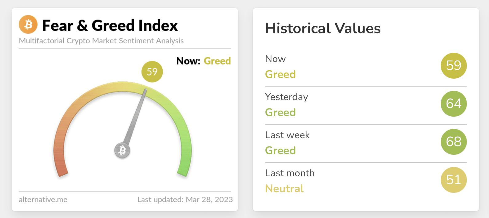 Where can I find the latest Fear and Greed Index for cryptocurrencies?
