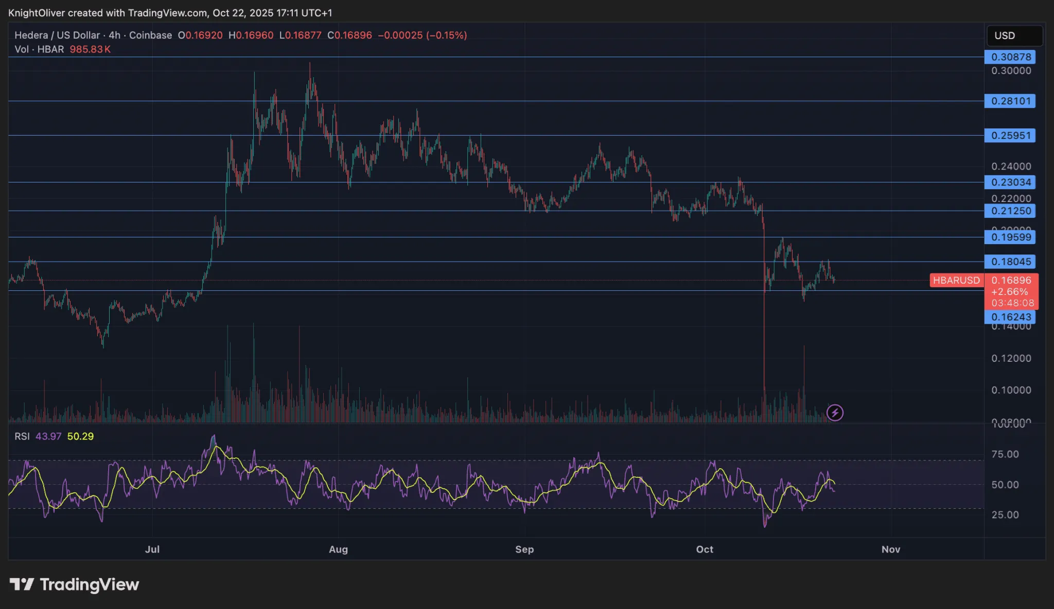 The drop in HBAR’s value suggests that traders are reacting to changing market conditions, which may have influenced their decision-making. As support levels crumble, investors may be reassessing their positions and strategies regarding HBAR.
