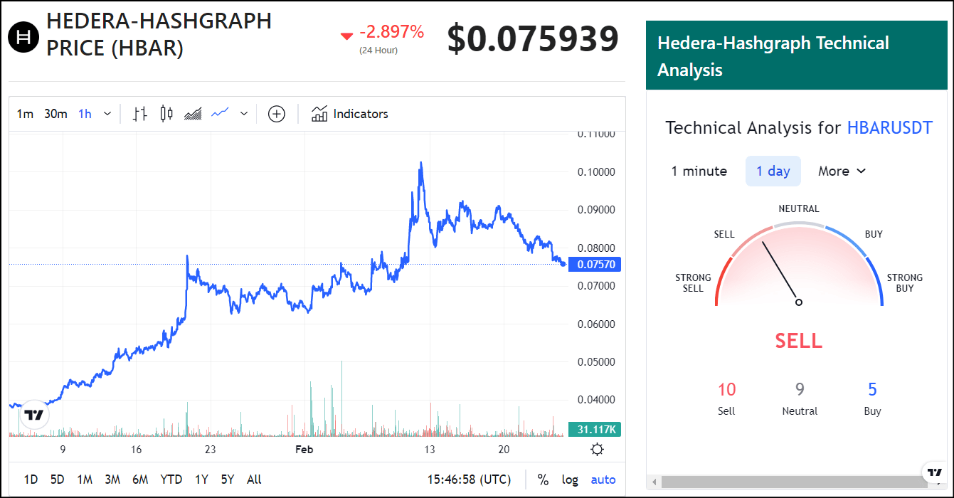 | Trading Volume | Increased selling pressure was indicated by a surge in HBAR’s daily trading volume. |