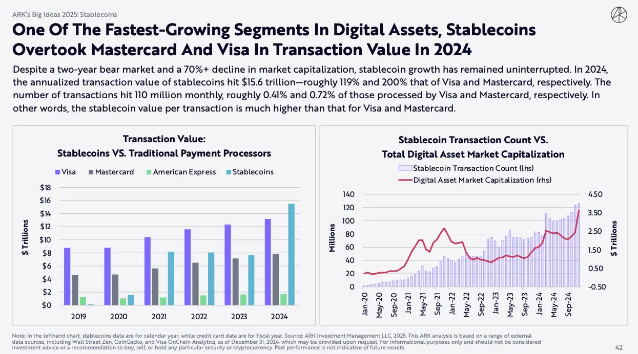 Stablecoins have surpassed Visa in onchain transaction volume, achieving a total of $46 trillion in 2025. This significant milestone underscores the increasing importance of stablecoins in the financial landscape. Leading the way in this growth are platforms like Ethereum and TRON, which have facilitated a substantial portion of these transactions. The rise of stablecoins reflects a shift in how financial transactions are conducted globally, as they offer a stable alternative to traditional currencies. As more users and businesses adopt stablecoins, their integration into various financial systems continues to expand, challenging established payment networks.