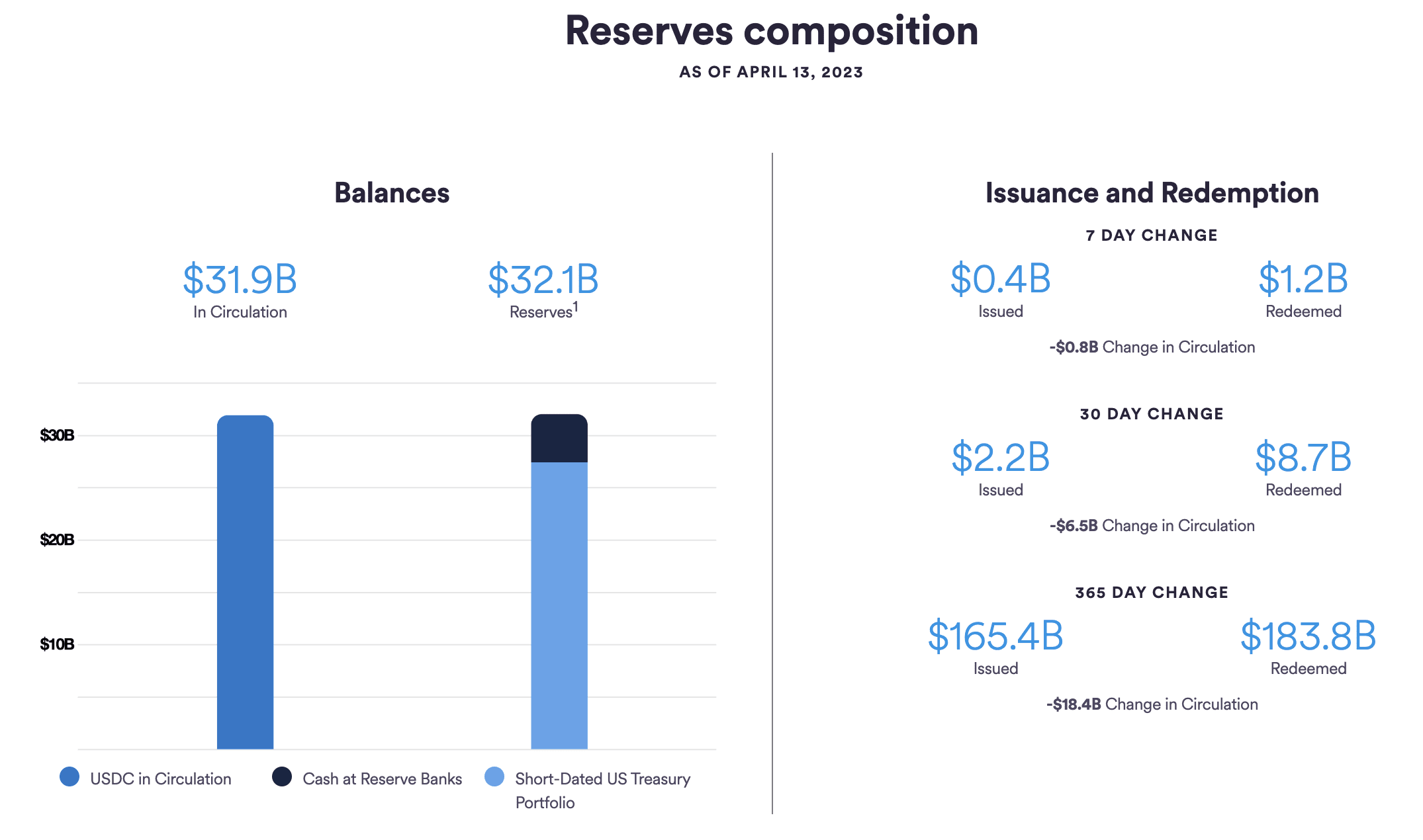 What is the latest Circle USDC update regarding reserves amid the circulation decrease?